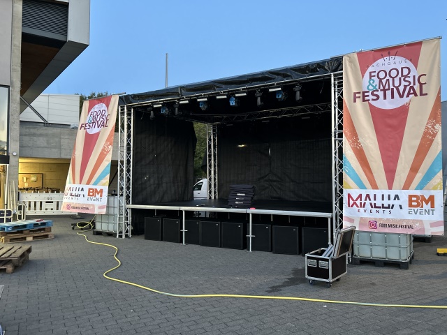 Rigging: Auf dem Fest wurden von uns insgesamt rund 100 Meter Milos QTF Traverse verbaut, größtenteils für die Bühne, die 20 Meter lange Getränkebar sowie die 8x4 Meter große Cocktailbar.